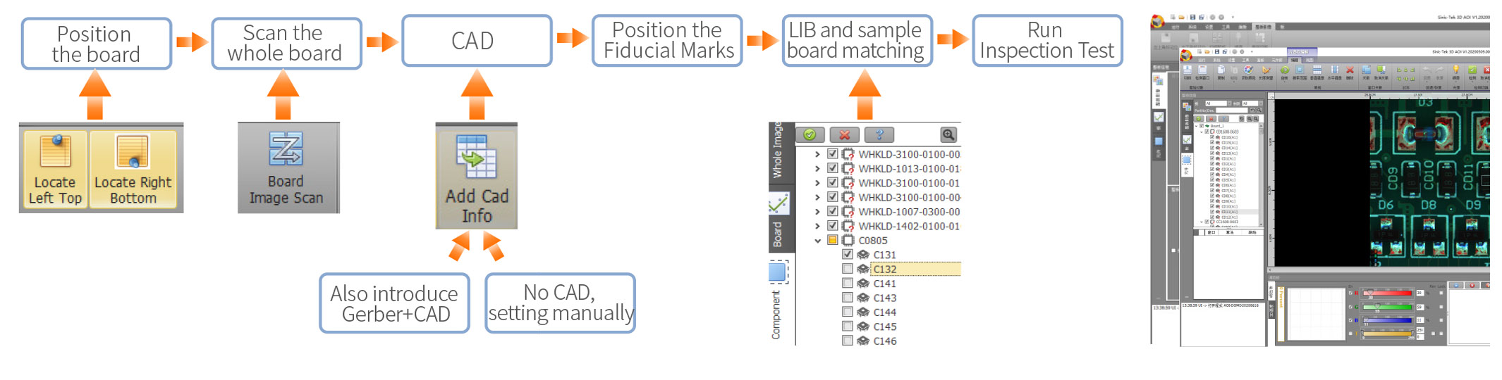3DAOI has complete SPC analysis software and closed-loop control, ensuring that the inspection data of 3DAOI could be completely recorded and analyzed, and with highly accurate traceable results. 3DAOI three-point integration function enables the resolution of specific measurement value of a single PAD using Sinic-Tek's 3D SPI and 3D AOI.